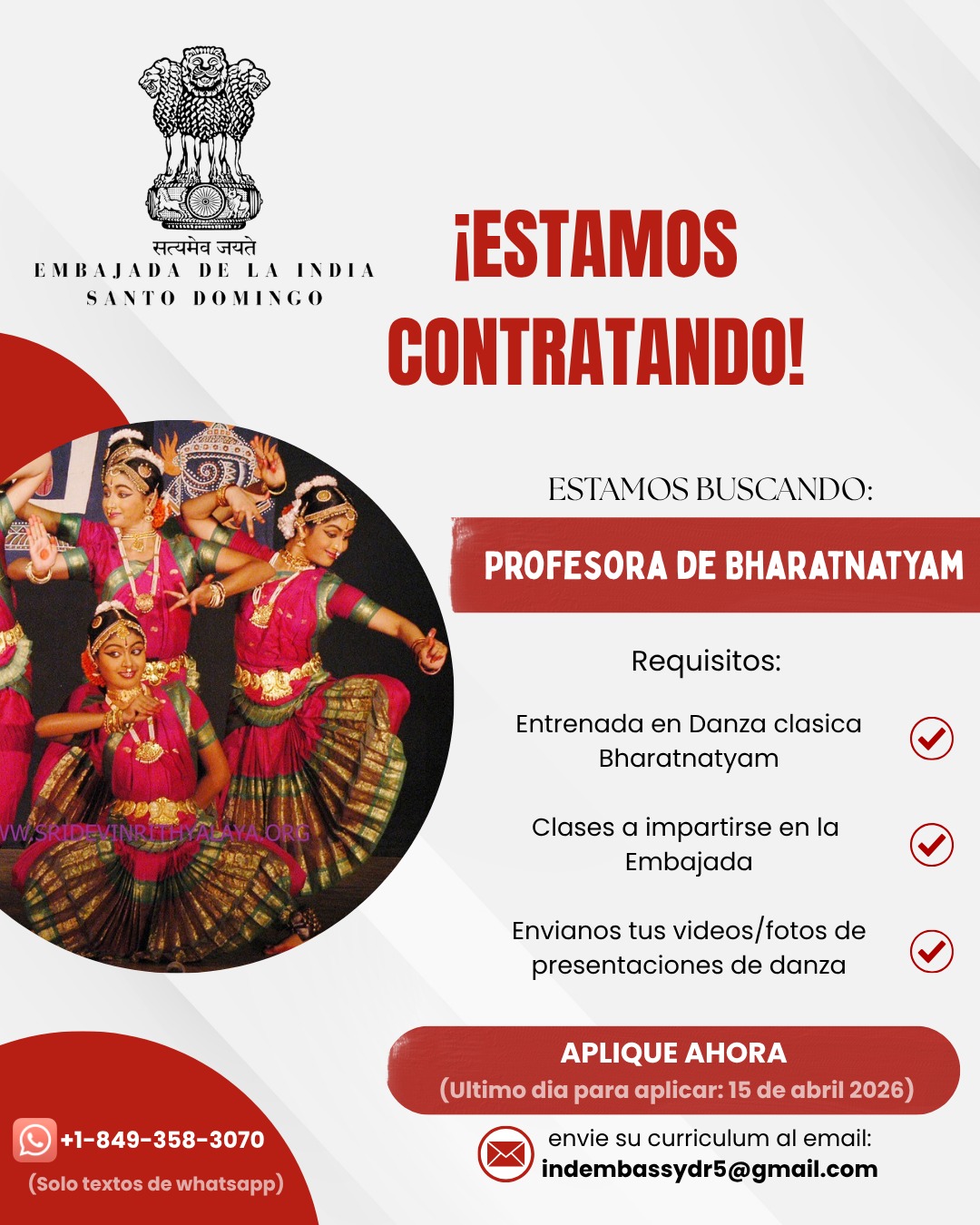 Vacante para la Profesora de Danza Odissi.