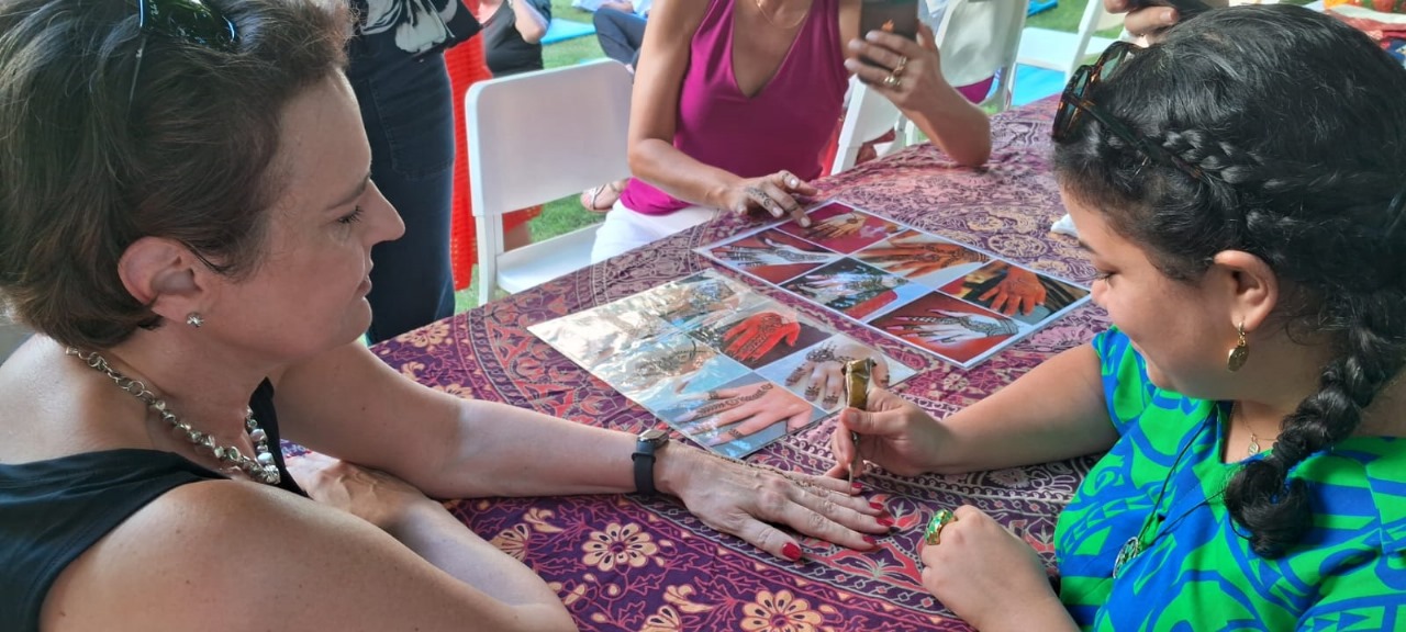 Embassy of India organized on 12 AugustĀ 2024 the Indian Cultural EveningĀ in collaboration with the Association of Diplomatic Ladies and Spouses of the Dominican Republic, ADACODI. During the Indian Cultural Evening there were dance demonstrations, henna art and sari fittings, a yoga session, as well as tastings of authentic Indian food.