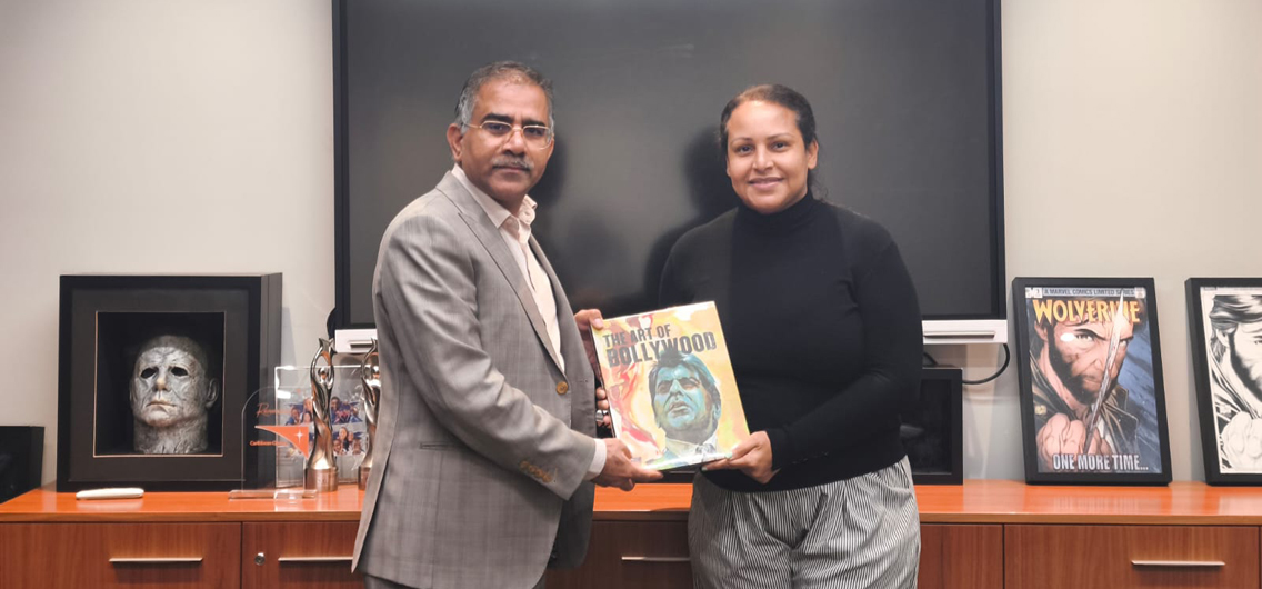 Ambassador KD Dewal met Director General Operations of Caribbean Cinemas Ms Zumaya Cordero at the Caribbean Cinema Headquarters on 6 December 2025 in Santo Domingo. Cooperation for Promotion of Indian Cinema in Dominican Republic and collaboration for an Indian Film Festival among other issues were discussed.